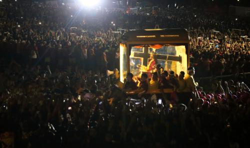 在其中一起事件中,一名信徒試圖翻越奎松大道上的路障,卻不慎滑倒,臉部摔在人行道上。他的臉部和四肢腫脹受傷。